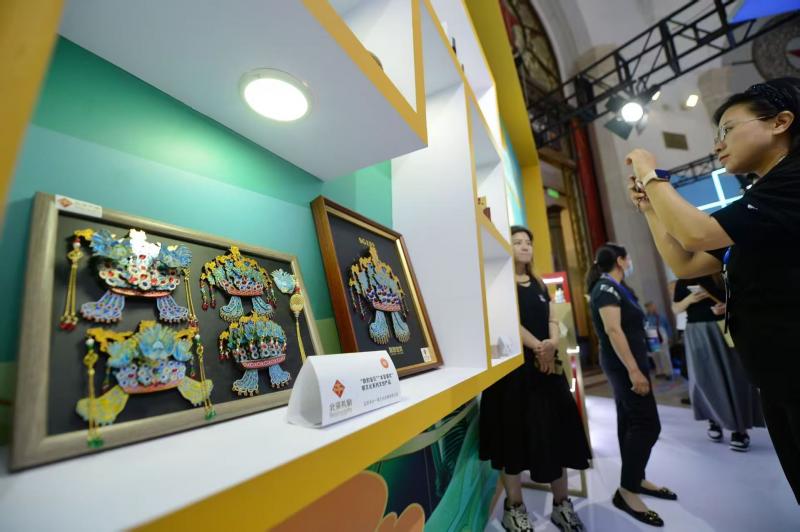 “北京礼物”是全国唯一一个以城市命名的旅游商品注册商标,由北京市文化和旅游局运营,精选有文化、有特色、有品质、有市场的旅游商品和门店,以旅游商品为载体,传承首都文化,叙述北京故事,展现现代风貌。此次“北京文旅博览会”现场,“北京礼物”展区展示了品牌11年的发展之路和不同时代的代表性商品,又以旋转灯箱展示“北京礼物”现有的诸多“顶流”,同时为满足消费者一站式观览+购物的体验,还将近期纳入体系的商品进行现场展销。